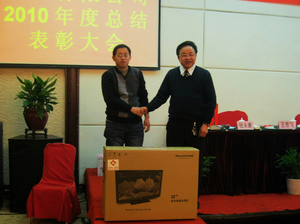 會后,舉行了盛大的晚宴。晚宴上的抽獎活動,獎品十分豐富,龔政堯先生抽出特等獎彩電并與獲獎員工親切合影。本次大會,在團結融洽的氣氛中,完滿結束。