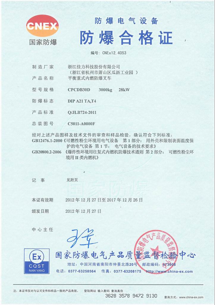 防爆證書>>詳細(xì)信息