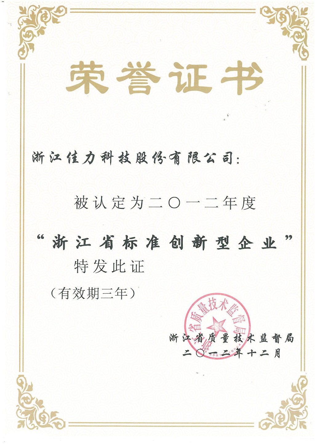浙江省標(biāo)準(zhǔn)創(chuàng)新型企業(yè)證書(shū)