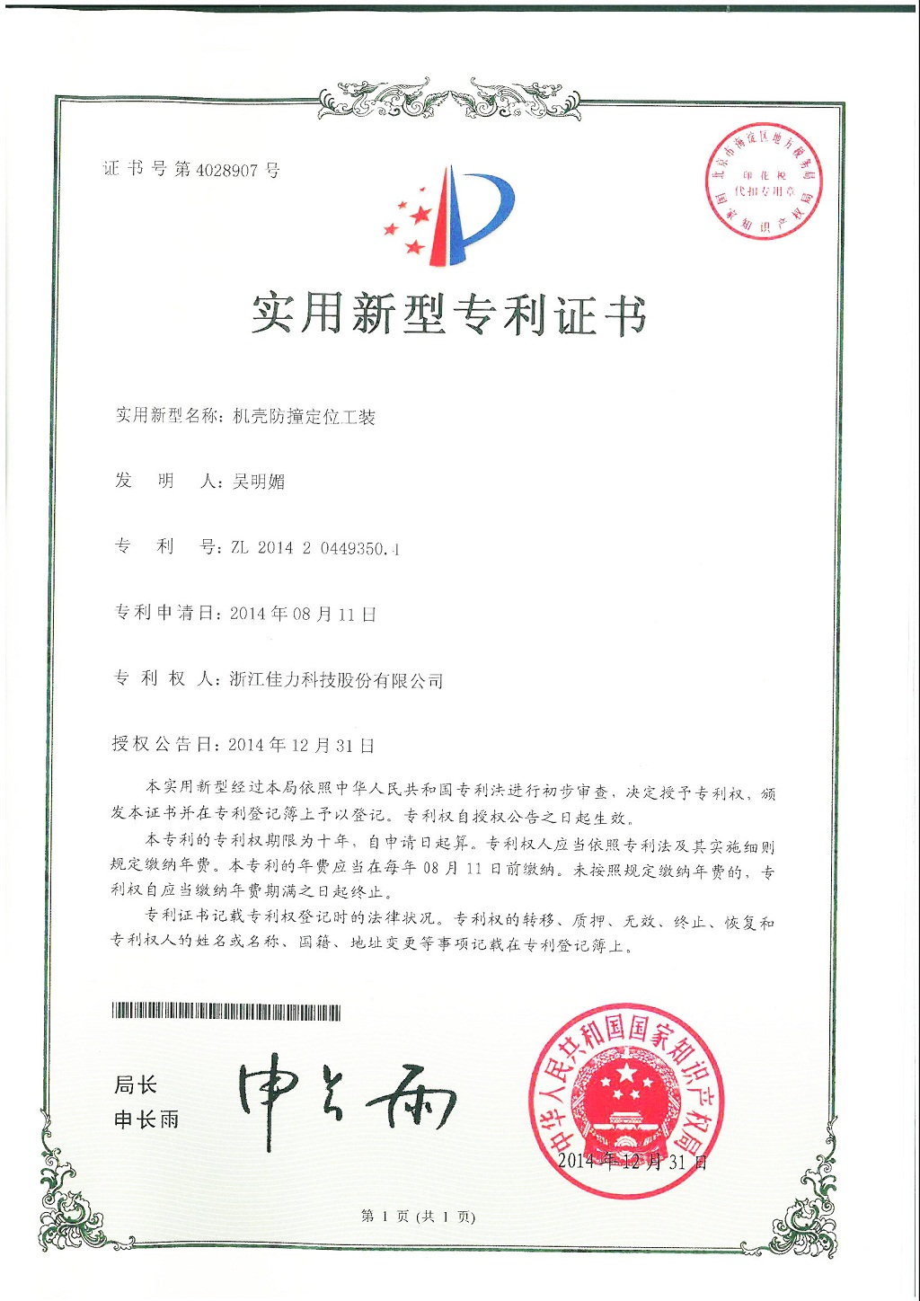 技術(shù)發(fā)明專(zhuān)利證書(shū)